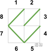 Around the courtyard is an outer ring of unit cells, one cell wide, with the four corners missing. Each of these outer cells is the home of a courtier. The courtiers in these outer cells are numbered clockwise, starting with 1 for the leftmost of the cells in the top row, and ending with for the topmost cell in the left column. For example, for , the numbering in the outer ring looks like this. (Note that no hedges have been added yet.)