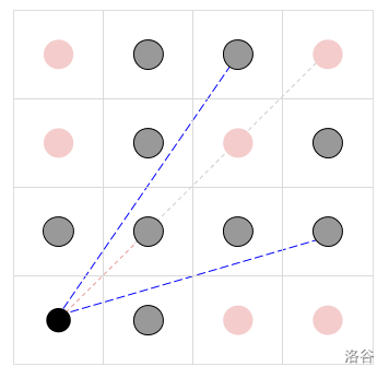 You, as a trained mathematician, quickly observe that there could be pillars impossible to see from the viewpoint. Cody-Jamal asks your help in determining, for different combinations of and , the number of visible pillars. Formally, a pillar is visible if and only if there is a straight line segment that runs from the center of the southwest corner cell (the viewpoint) to any point on the pillar's boundary, and does not touch or intersect any other pillar.