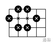 For example, to enclose points on a grid, we need at least stones. One of many valid stone layouts is shown below. Enclosed points are marked with an "x".