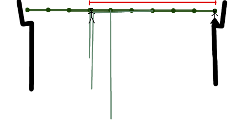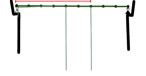 You are standing on a ledge in the jungle, and your one true love is standing on a similar ledge at the other side of a swamp infested with snakes, crocodiles and a variety of other unpleasant denizens. Fortunately, there is a number of vines hanging from the canopy of the jungle over the swamp, even more fortunately, you somehow managed to get hold of the first of these vines (see figures below). The canopy of the jungle is at a constant height, and both the ledges are at the same height as the canopy. The vines are simply lines hanging from the canopy at certain points, with differing lengths.