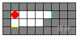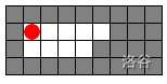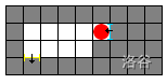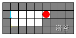 Gray cells represent walls, white cells represent empty cells, and the red circle indicates your position.