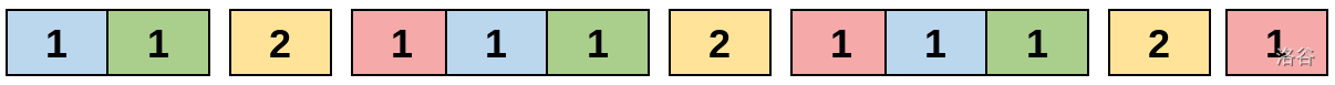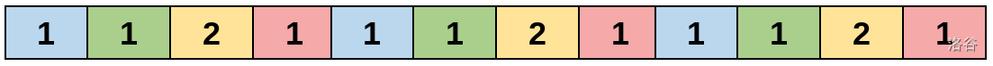 In the first example, the stack contains the following types of gifts (in order from top to bottom). Different colors denote different positions in the stack.