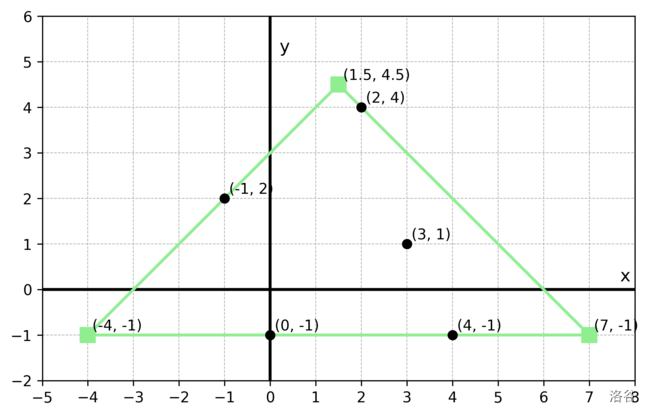 在二维平面上有 个不同的点。对于每个 的 ,第 个点的坐标为 。