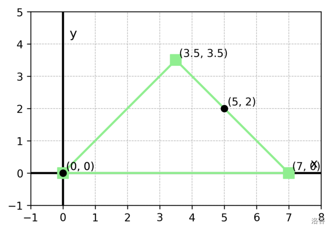- 个点 都位于等腰直角三角形的边界(边上)或其内部。如果某个点位于等腰直角三角形的顶点上,也视为位于边界上。