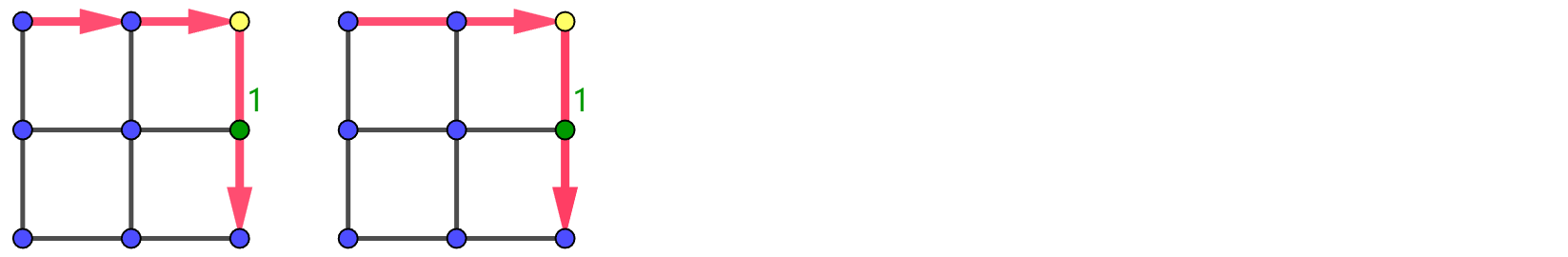 以下 2 种方案不合法,因为在这些方案中,小 L 越过了 pi=2 的特殊点: