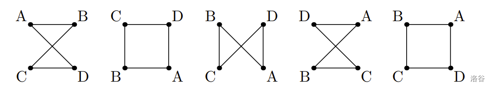 Consider four integers , , , and , such that . Let's put them in the corners of a square in some order and draw a loop . Depending on the arrangement of the integers, we can get different loop shapes, but some arrangements produce the same shape: