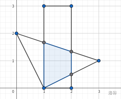 具体地,以矿区的左下角为原点, 米为一个单位长度,则矿区可以看作是一个以 为四个顶点的矩形。矿区内有一片矿脉。矿脉可以看作一个 个点的简单多边形,顶点分别为 。由于一些原因,这些顶点的横纵坐标都为整数。