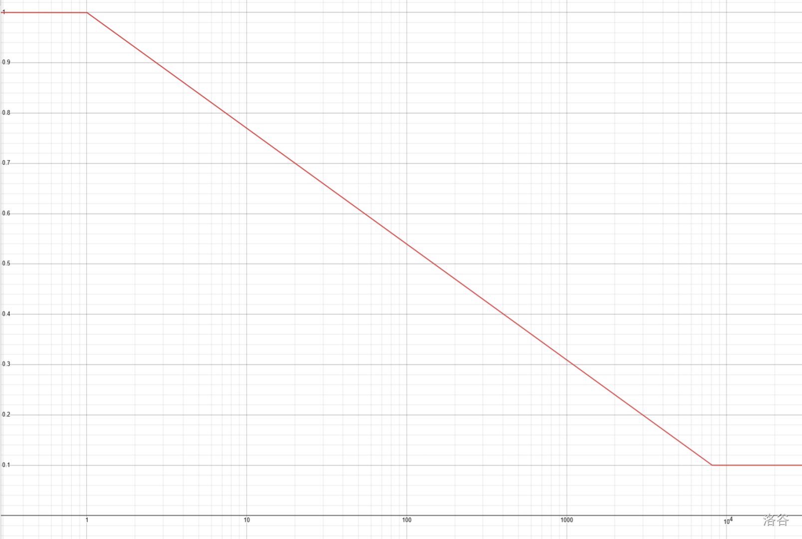 若你在结束交互前未能得出正确答案,你将不会获得该测试点的分数。否则,设该子任务分值为 ,你查询所耗费的价值为 ,你将获得 分。 的图象如下: