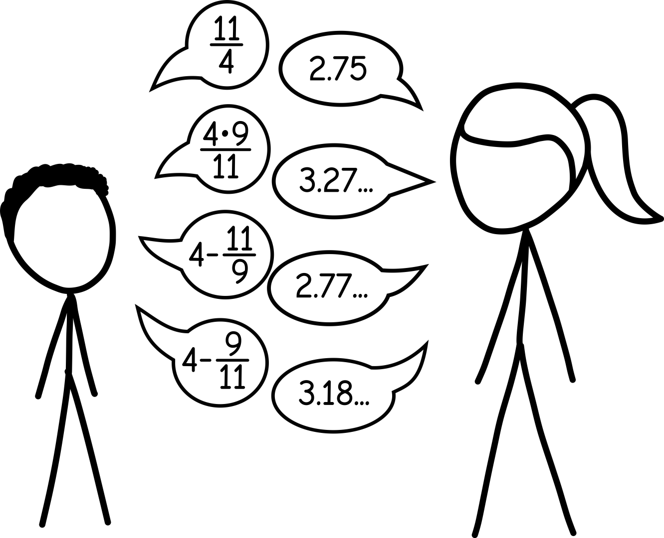 Max enjoys playing number games, whether it involves finding a combination that leads to a given result or discovering all possible results for some given integers. The problem is that Max is only 10 and has limited mathematical knowledge, which restricts the possibilities for these games. Luckily, in today's maths class, Max learned the concept of parentheses and their effects on calculations. He realises that incorporating parentheses into his number games could make them much more interesting. After getting home from school, he asked his sister Nina to play a variant of his favourite number game with him, using parentheses.