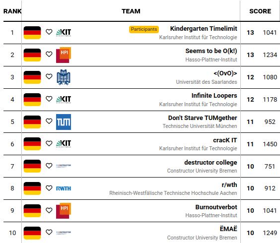 top ten teams last year are from kit cu uds hpi tum and rwth