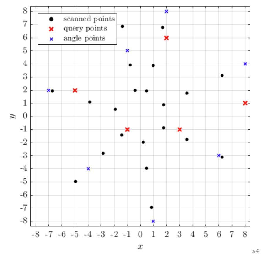 We are using a special radar to scan an area. The radar accepts a list of distances, e.g. 2, 4, 1, and a list of angles, e.g. , , , , , and scans the points across all the given distances and angles. How close to some other points of interest will we be able to scan?