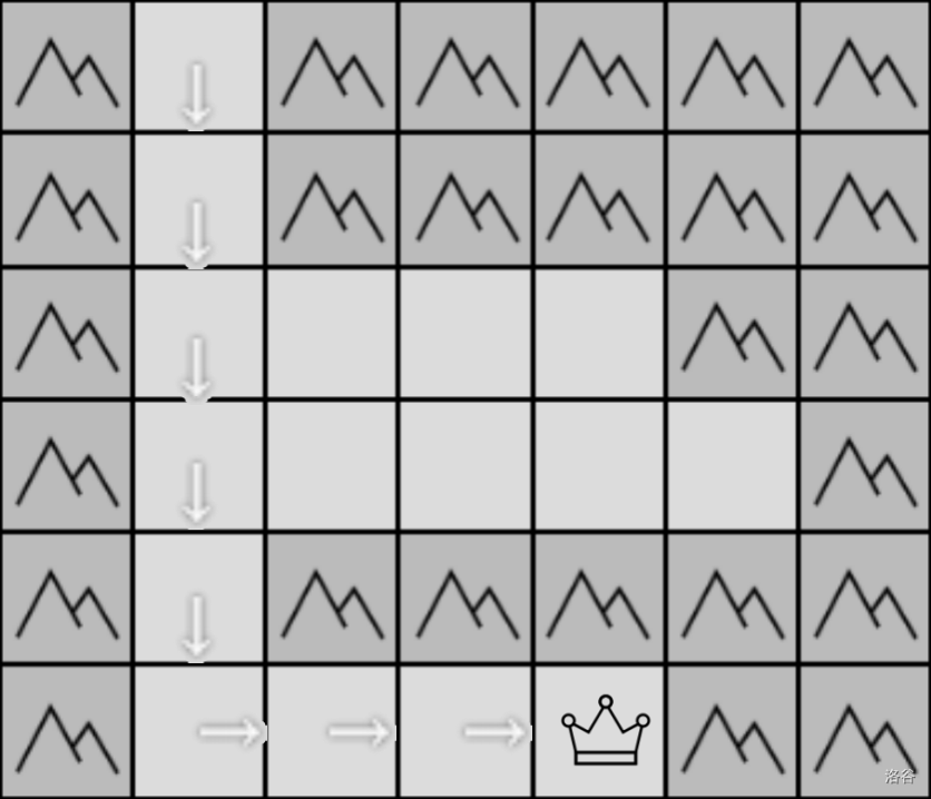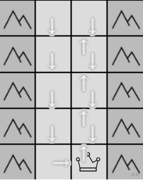 你需要从第 行最左边的格子走到第 行最右边的格子。但你走的过程中只能向上、下或右方向,也不能走出网格。但是可以重复走某个格子,重复走的只算一次。