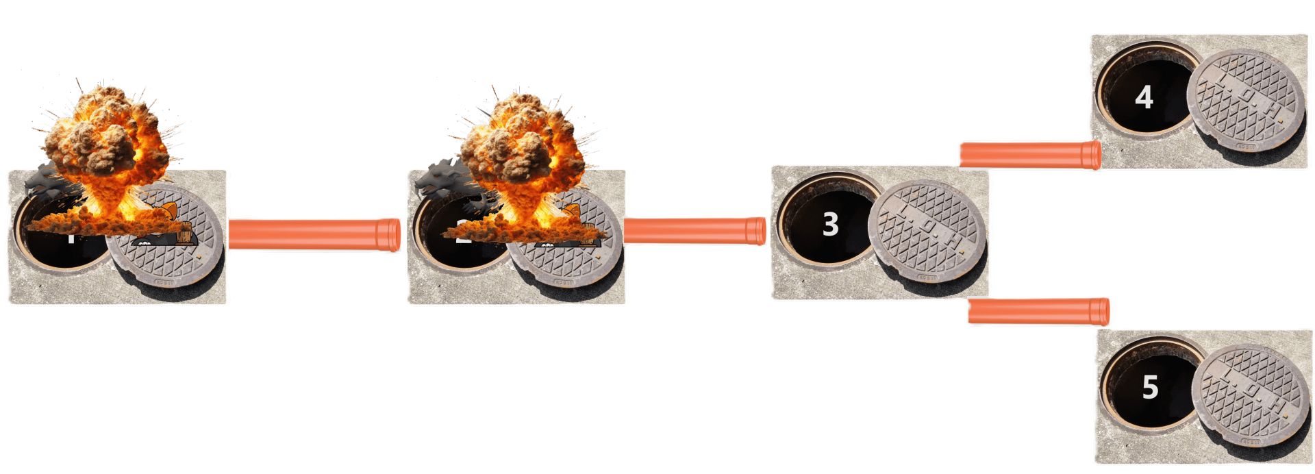 图 1: 样例 2 中的下水道布局。请注意,你的程序不会知道管道的布局。