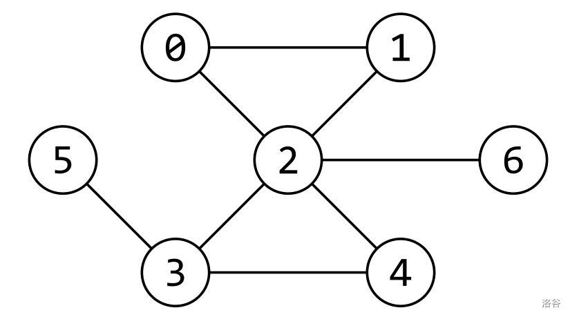 Consider the sample graph from the image in the statement, which has , and edges , , , , , , and . Additionally, since the orders of the elements in the nodes' adjacency lists are relevant, we give them in this table: