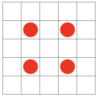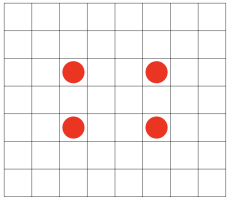 Alice is playing a mobile game where the goal is to protect the base from zombies by placing towers. The base in this game can be represented as a matrix of size . Alice can place towers in any cells that do not go beyond the boundaries of the matrix. The base is considered protected if there is at least one tower in any square. Help Alice find a tower placement that will protect her base. Since she has just started playing and does not have much money, from all possible placements, output the one that has the minimum number of towers.