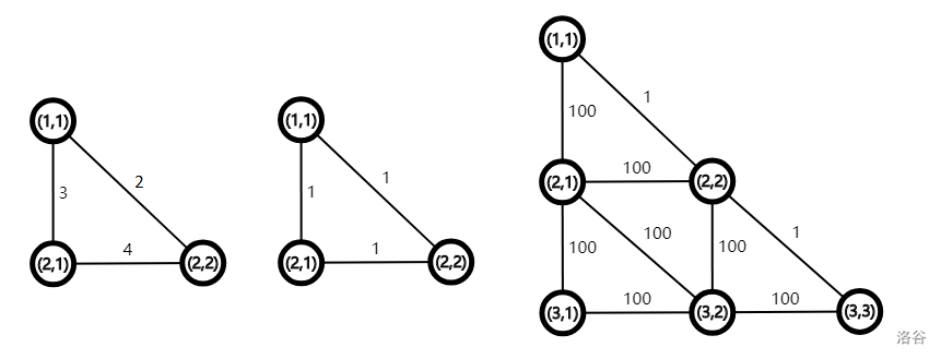 For the following lines, the -th line contains integers (), where indicates the length of the road connecting intersection and .