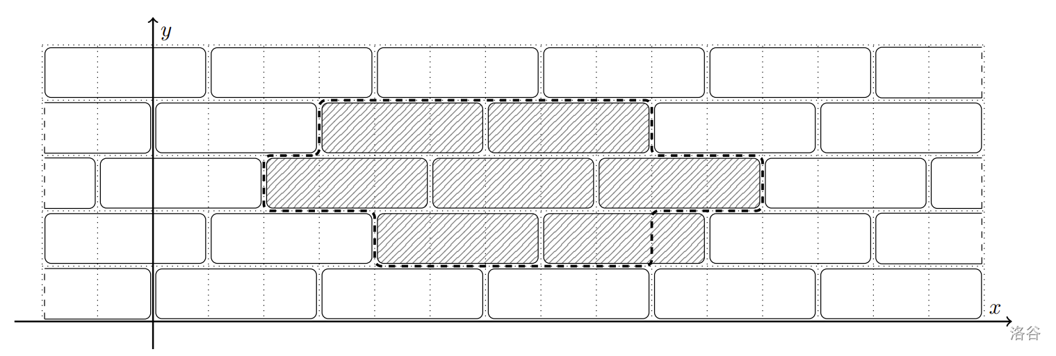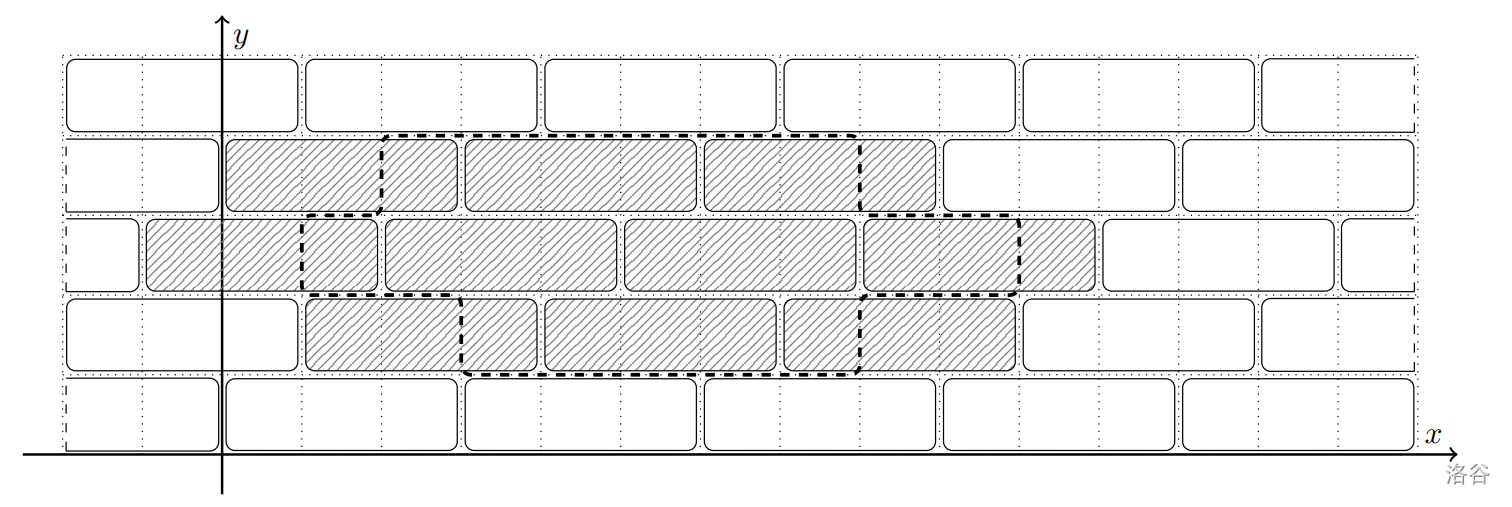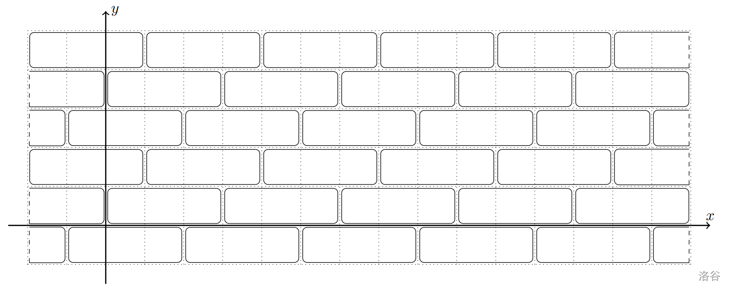 阿尔汉格尔斯克市中心的一处广场铺设着大小为 的长方形地砖。若建立一个坐标系,使其中一块地砖的左下角位于坐标点 ,则所有地砖的左下角坐标可表示为 ,其中 和 为任意整数。