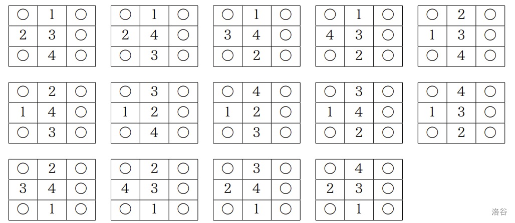 向标准输出输出一行,表示从初始状态到达成目标为止所有可能的棋子放置顺序的数量对 取模的结果。