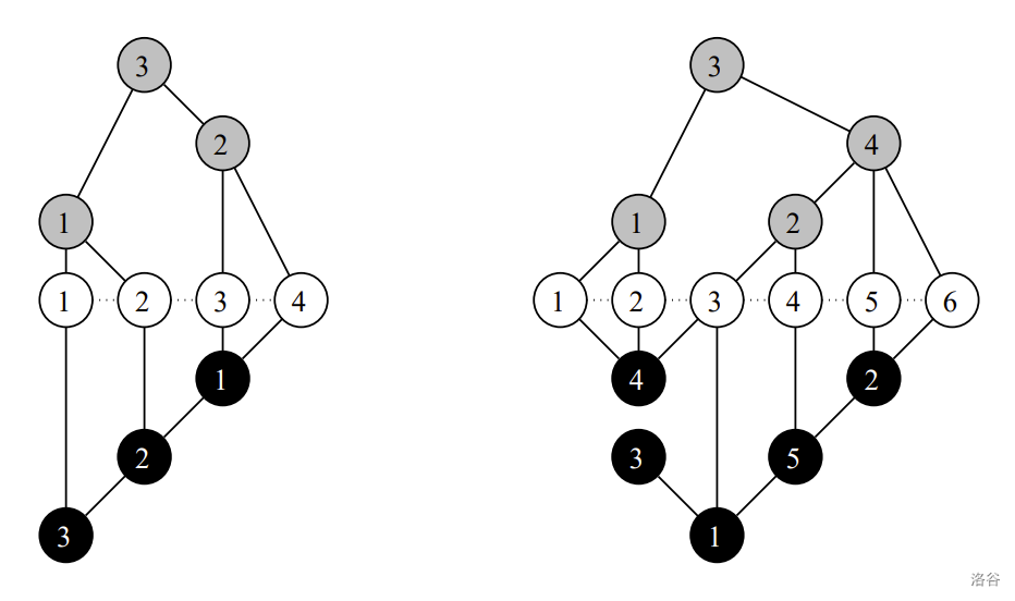 JOI 国位于平面上。国内有 N 个村庄,村庄编号为 1 到 N。村庄 i 被视为位于坐标 (i,0) 的点。目前,JOI 国计划建设连接村庄的通信线路。为应对故障,计划建设两套系统,分别称为 系统 1 和 系统 2。