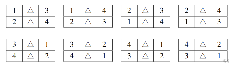 初始状态下, 个方格的状态如下(△ 表示初始时已放置吉祥物的方格):