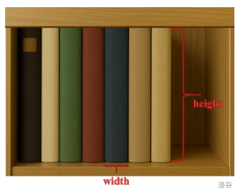 A bookshelf of length holds books, , arranged from left to right. Each book has a width (thickness) of . The heights of the books and the books are the same. Position on the shelf corresponds to a point located units far from the left end. If a book is placed at position , it occupies the interval on the shelf. Then the intervals of the books on the shelf are pairwise disjoint. The left end of the shelf is at position 0, the right end is at position , and the shelf as a whole occupies the interval .