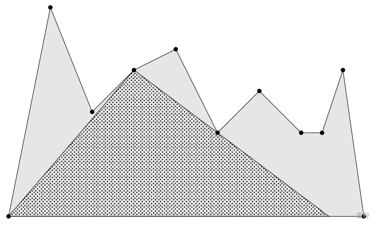 Given a terrain defined by the points , find the largest triangle that fits entirely within the terrain, and one of its three vertices is positioned at one of the terrain points through .