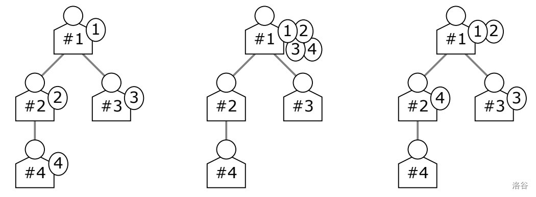 You are the head of a group of employees including you in a company. Each employee has an employee ID, which is an integer 1 through , where your ID is 1. Employees are often called by their IDs for short: , , and so on. Every employee other than you has a unique immediate boss, whose ID is smaller than his/hers. A boss of an employee is transitively defined as follows.