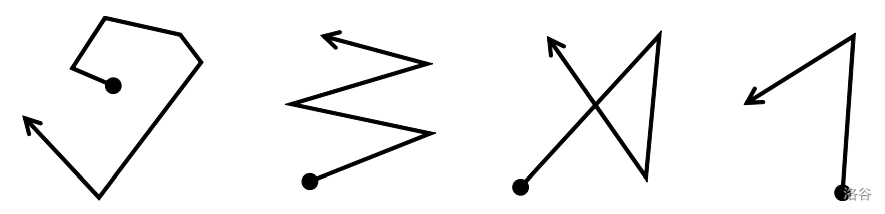 - At all of its vertices, the line segment directions turn clockwise.
