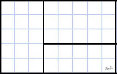 在第一个样例中,可以将房间分割为三个房间,尺寸分别为 、 和 。