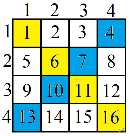回忆一下,主对角线是连接左上角和右下角单元格的对角线,图中用黄色标记。注意图形是正方形。