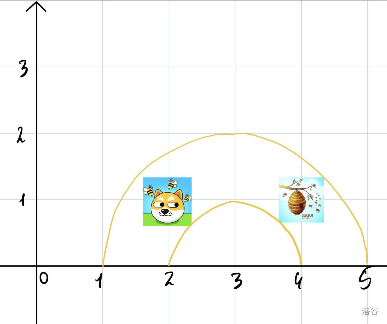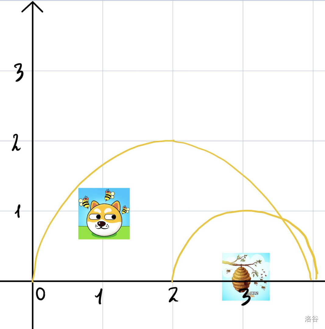 Mathematically a dome is a semicircle with center at point and radius . It is impossible to pass through the wall of the dome. The dog and the beehive can be represented as two points and . If a point is inside the dome, we consider it to be inside.