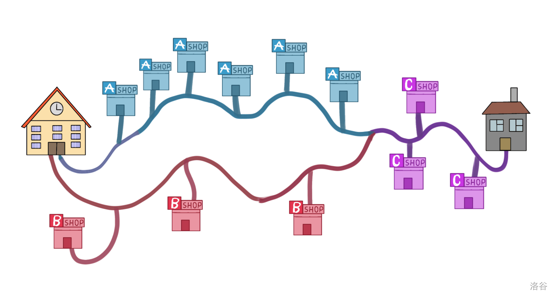 Anton also knows that there are shops that are encountered on both paths (in both places). Anton is curious about how many shops are there in his city in total? Let's assume that there are no more shops in the city except for these shops.