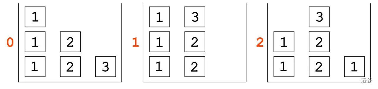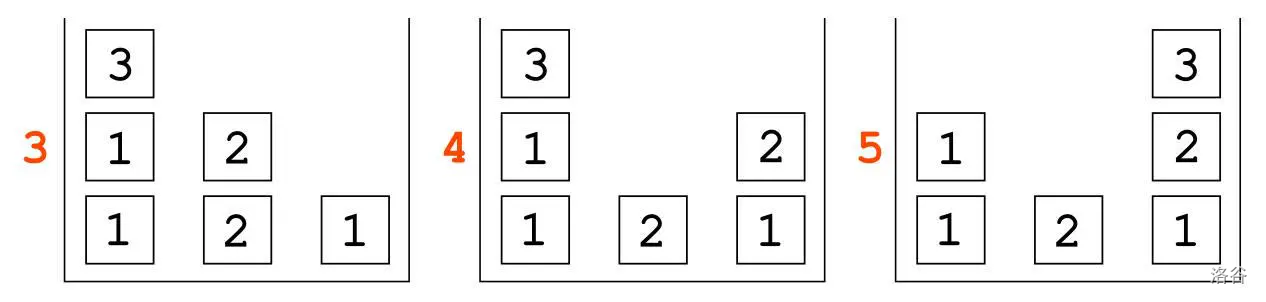 After we have placed , we need to place and in their places in the third column, again the only way to do this is to first move to the first column, because otherwise we will not be able to place in the third column in the next move, and then place in its place.