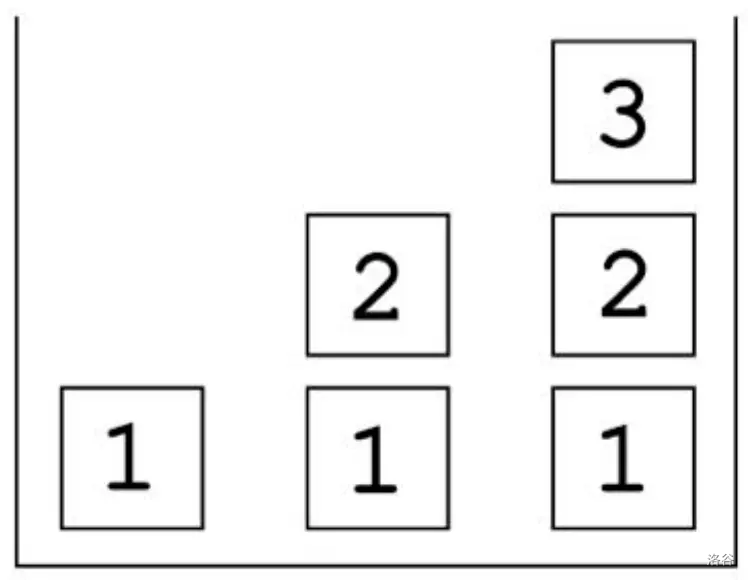 Vasylko wanted to rearrange them so that all cubes were positioned below the . Thus, in the first row from the bottom, there should be cubes with the number ; in the second row, there should be cubes with the number ... in the -th row, there should be one cube with the number . That is, in the -th row, there should be cubes with the number .
