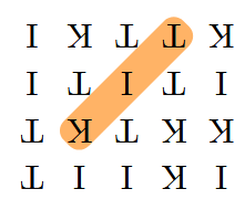 回想一下,在字谜游戏中,目标是在字母网格中找到隐藏的单词(在这种情况下只有一个隐藏单词)。单词可以水平、垂直或对角线出现,以及向前或向后,总共允许 种不同的阅读方向。